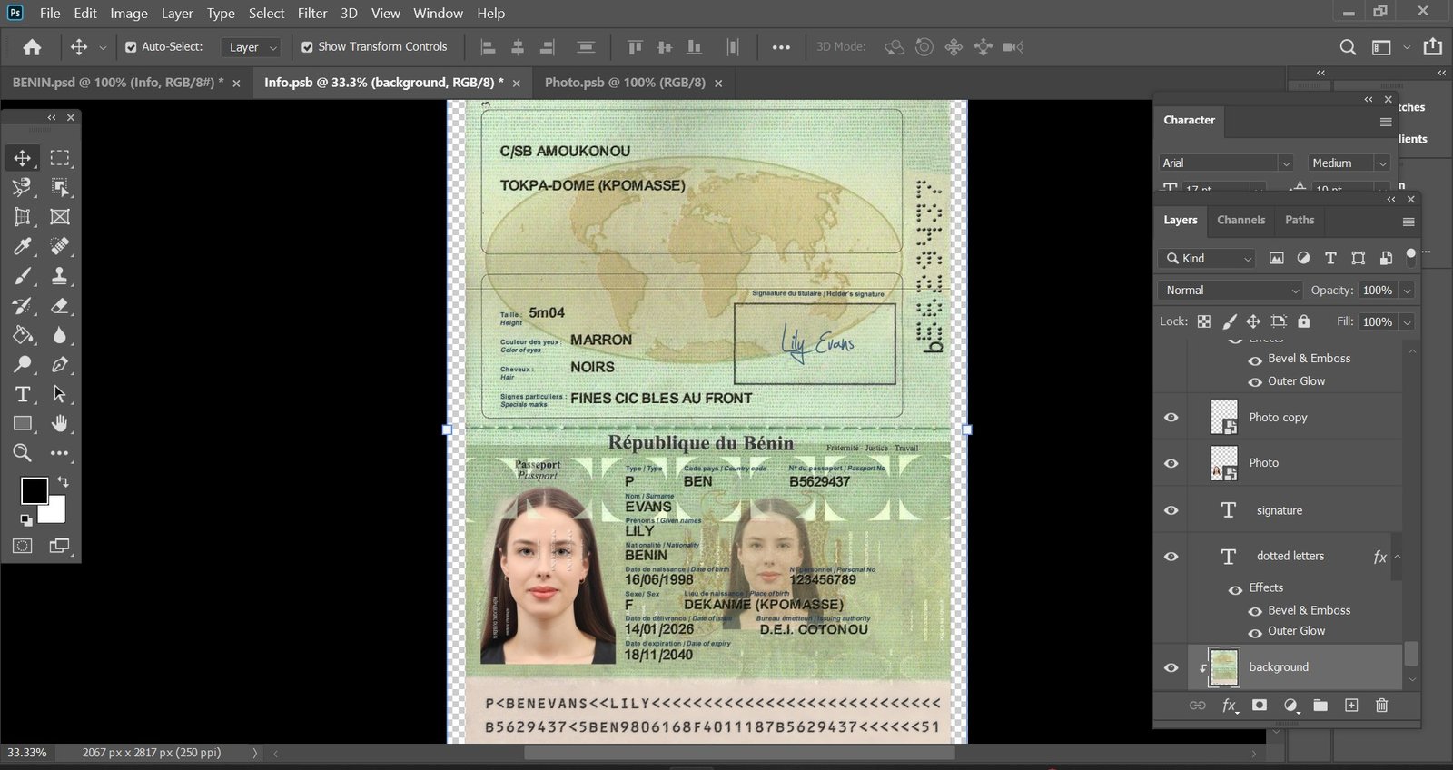 This Benin Passport PSD Template High Quality – Fully Editable is designed using a layered PSD structure,