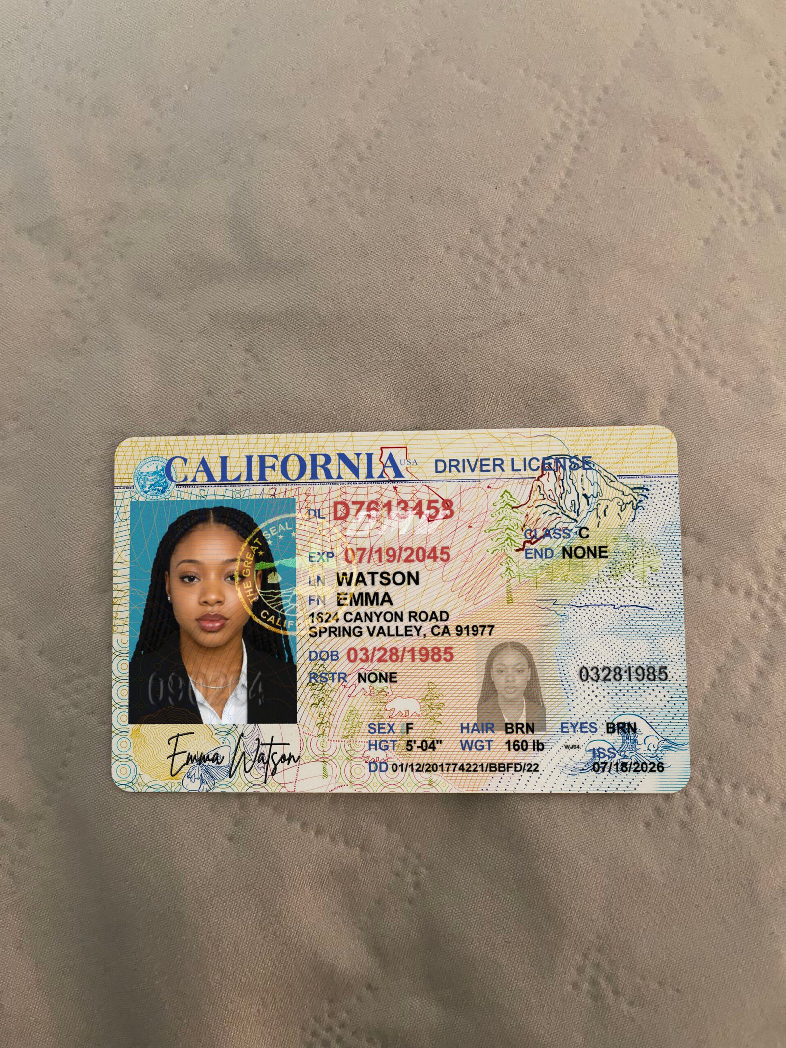 - Authentic California Driver License OLD version design