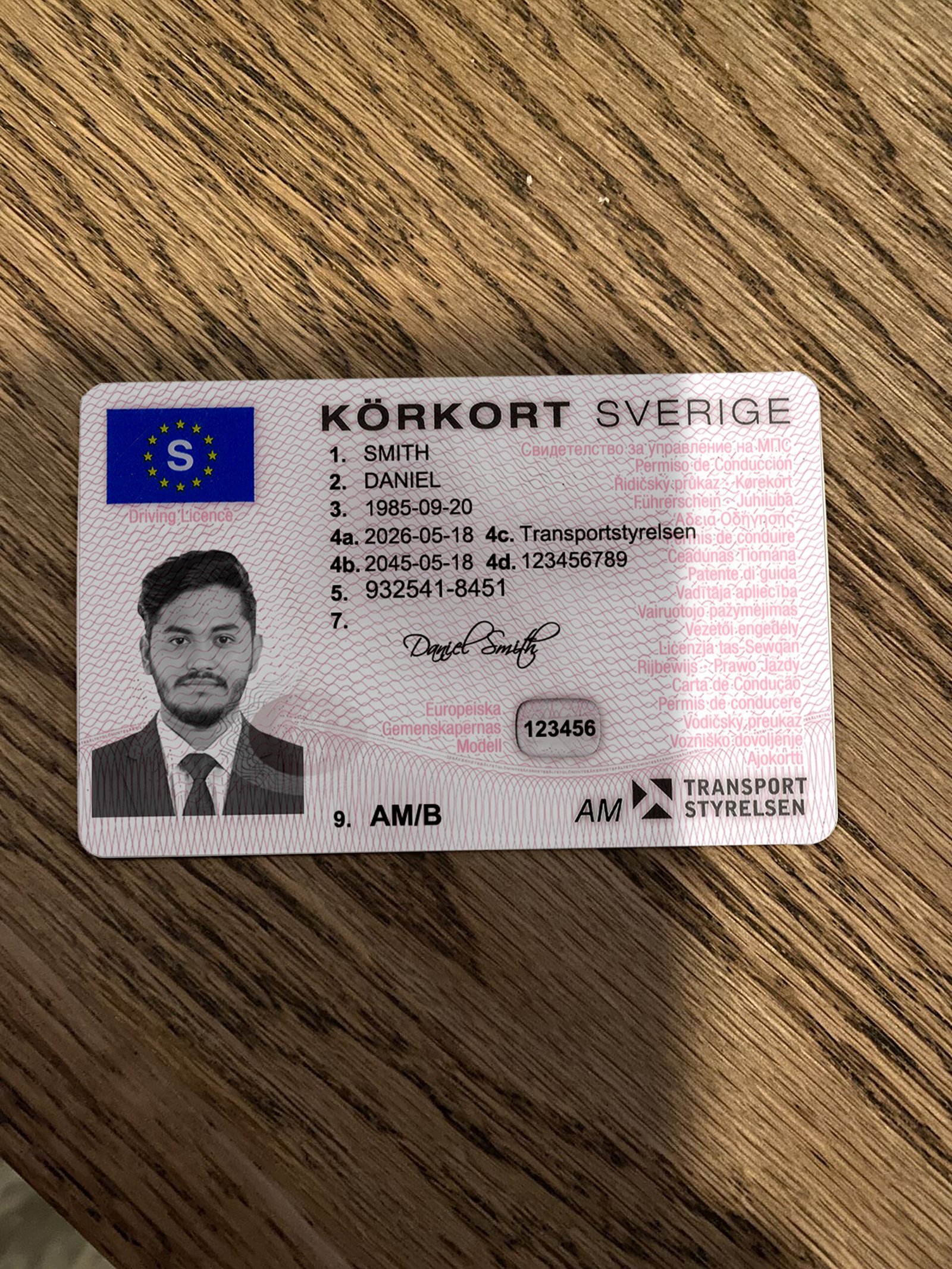 - Modern Swedish driver license–style formatting